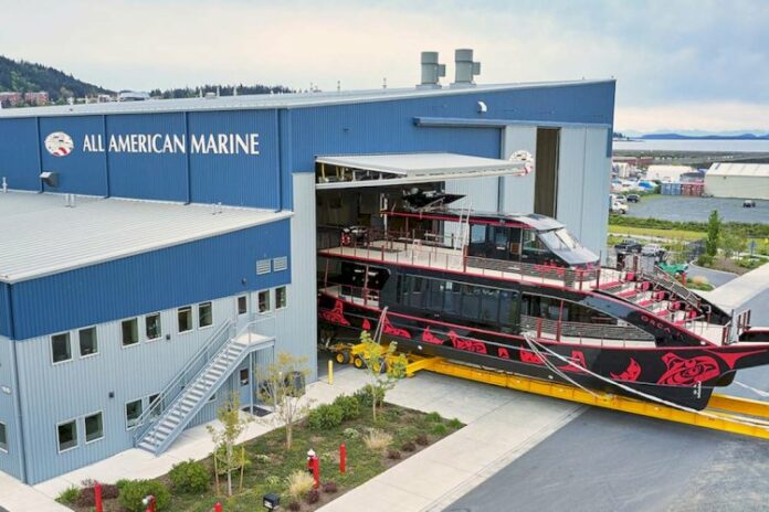 All American Marine, Inc. (AAM), together with Great Western Attractions (GWA), has announced the launch of the first of two 80’x 27’ aluminum catamarans for operation as a passenger excursion vessels in Puget Sound.