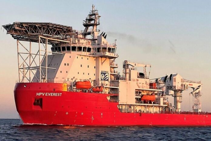 Owned by Maritime Construction Services (MCS), the multipurpose vessel can carry bulk fuel and has cargo space for up to 96 twenty-foot containers on its decks, as well as a helipad above the bridge.