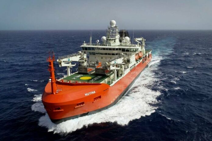 RSV Nuyina was due to leave earlier in the week, but an issue with the ship’s alarm and monitoring system software delayed its departure.
