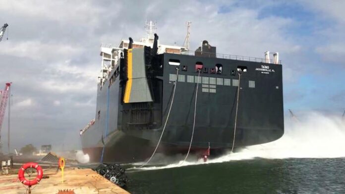 On Friday, Crowley Maritime christened its second LNG-fueled con/ro, Taíno, in a ceremony at its terminal in Puerto Rico. The first, El Coquí, entered service last year.