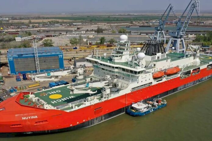 Upon arrival at final destination in Romania, the barges will be lifted on to RSV Nuyina by her onboard cranes, where they will be lashed to the cargo hatches.
