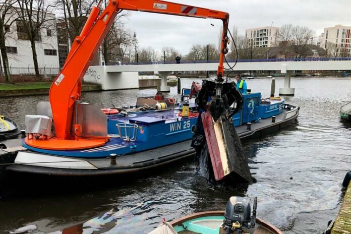 Damen Shipyards Hardinxveld has delivered a Damen Crane Vessel 1804 WN25 to the “bagger en drijfvuil” (dredging and floating debris) department of Waternet Amsterdam, the organization responsible to delivering fresh water and associated management services to 1.3 million people in and around Amsterdam.