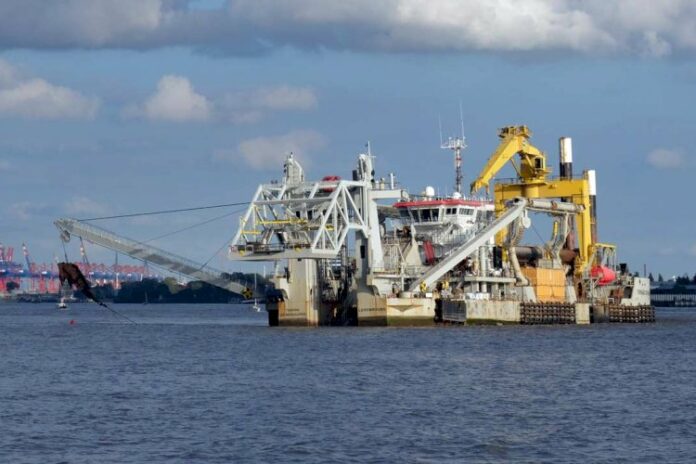 In the final stage this week, the so-called cutter-head suction dredger “Fernão de Magalhães” will do the remaining work on the Elbe river bed.