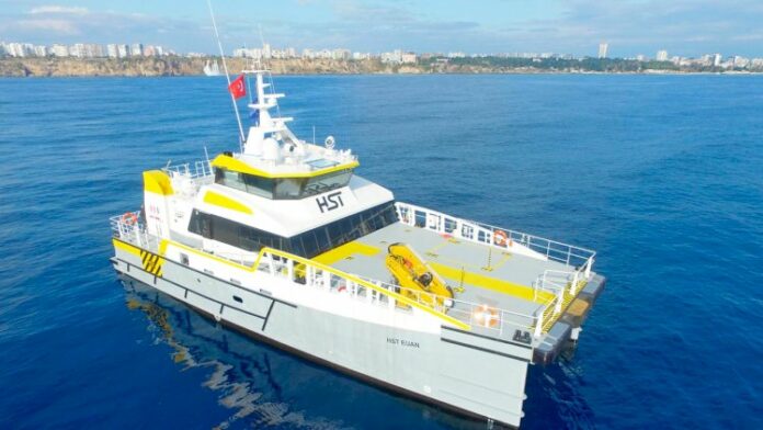 The new addition to the HST fleet has already been signed up for a five-year contract with leading wind farm operator MHI Vestas. Early next month she will join HST Harri in transporting personnel and equipment between Ostend and the company’s various sites in the North Sea.