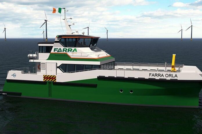 The design is compliant with European regulations for the transfer of 24 offshore workers and will be classed with BV. It will be the first in the Farra Marine fleet and be the first such vessel operating under the Irish flag.
