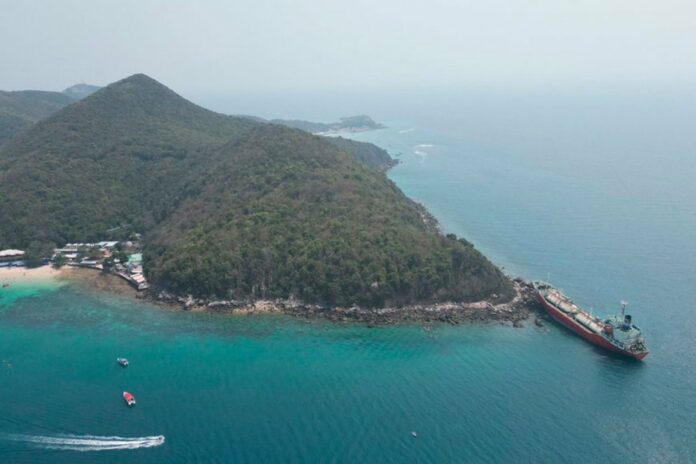 The liquid petroleum gas tanker NP Bankpakong ran onto the rocks at Sangwan beach, near the larger Ta Waen beach, on Koh Lan in tambon Na Klua of Bang Lamung district. The waters there are known for their many natural coral reefs.