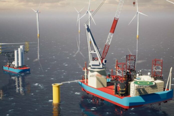 The new design will build on the same patent and characteristics of the current feeder concept, which was designed to operate in US waters. This unique patented design will allow the jack-up Wind Installation Vessel to stay on location at the wind park, while only tugs and barges sail back and forth from port to collect the wind turbine tower, nacelle, and blades. This concept is cost-competitive and expected to be more than 30% more efficient than conventional jack-up vessels.