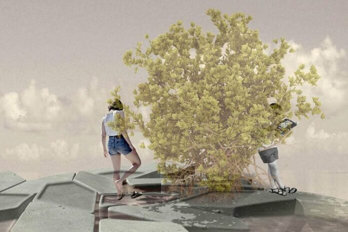 Floating mangroves have been tested at an experimental site, for the sake of greening a floating boat jetty. To better understand their larger-scale development, we need to find out more about energy, mooring, and transport requirements, financial feasibility and maintenance cost. Other important issues include the design of the structures on which the mangrove forests would grow and the materials used—recycled ocean plastic debris is one option.