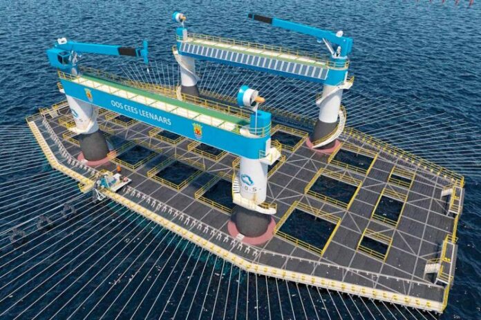 The first unit, the OOS Cees Leenaars will measure 76 mtr. by 32 mtr. and wind, solar and current power supply is implemented to allow charging of the supply vessels collecting and transporting the mussels onshore. With this technology, OOS aims for Zero Co2 emissions.