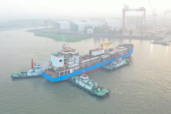FueLNG, a joint venture between Keppel Offshore & Marine Ltd (Keppel O&M) and Shell Eastern Petroleum (Pte) Ltd, has announced the launch of Singapore’s first LNG bunkering vessel in Keppel Nantong Shipyard in China. She was moved from land to water on 28 May 2020.