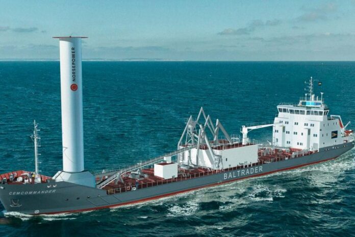 Baltrader Capital GmbH & Co. KG, Hamburg, and Norsepower, the leading global provider of auxiliary wind propulsion systems, have signed a contract concerning the delivery of one 24m x 4m sized Norsepower Rotor Sail™ in summer 2024. The product will be fitted on the newest cement carrier of the Baltrader fleet, M/V CEMCOMMANDER. It is going to be delivered from Jiangsu Zhenjiang Shipyard (Group) Co. Ltd. and ecological ship design was made by SDC Ship Design & Consultants GmbH, Hamburg.