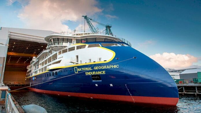The National Geographic Endurance is the first of two vessels of the CX104 design from Ulstein for construction at Ulstein Verft, Norway. The yard is situated at 62 degrees north, just four degrees south of the Polar Circle, and at the edge of one of the world’s toughest oceans, the North Sea.