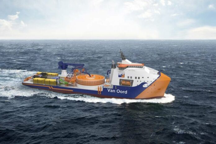 The new DP2 vessel will be equipped with a below-deck cable carousel and a second carousel on deck, with total cable-carrying capacity of 8,000 tonnes. The vessel will mainly be deployed on inter-array grid and export cables of offshore wind projects. The vessel is also able to install High Voltage Direct Current cables. Van Oord’s highly innovative cable trenchers can also be operated from this vessel.