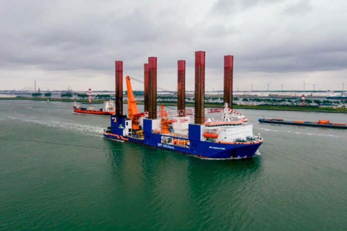 This week the MPI Resolution has set sail to Italy to install the monopiles, secondary steel and the wind turbines generators. The mobilization was prepared in the last two weeks in the Rotterdam area, taking a variety of equipment on board including a Menck hammer, sea fastening, upend tool and lifting equipment. ​​