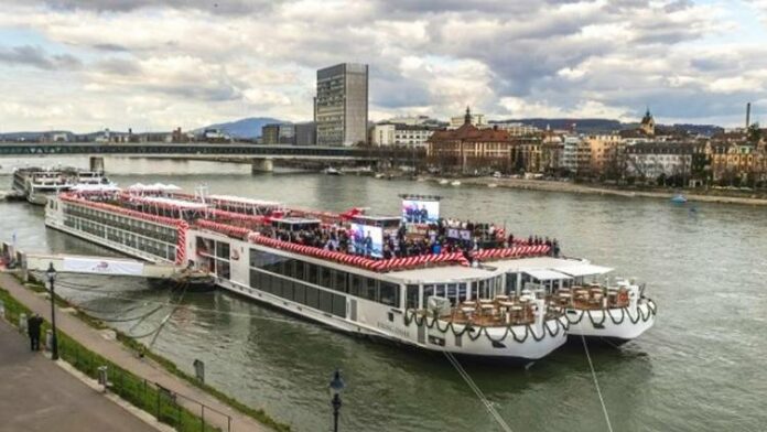 Viking welcomed seven additions to its river fleet on Tuesday during a celebration on the Rhine River in Basel, Switzerland.