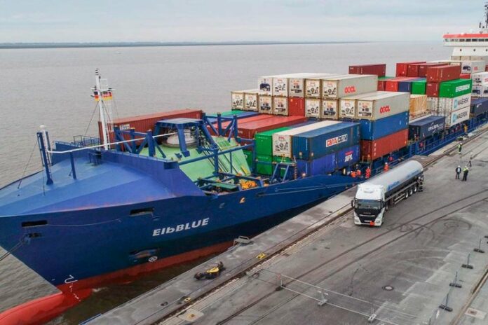 In a world-first for the maritime sector, the containership, ‘ElbBLUE’ – owned by German shipowner Elbdeich Reederei and operated by charterer Unifeeder – has bunkered some 20 tons of green SNG (Synthetic Natural Gas) at the Elbe port in Brunsbüttel, Germany.